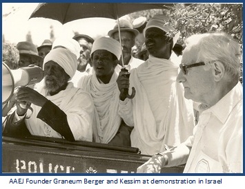 The American Association for Ethiopian Jews (the AAEJ) was founded in 1969 by Dr. Graneum Berger (z"l), a Jewish social worker in the United States. Graneum first met a group of Ethiopian Jewish students in Israel in 1955 and then visited Ethiopia in 1965. He was shocked to see Jews – the Beta Israel - being discriminated against, forbidden to own land and struggling to survive in the poorest country on the globe, all the while adhering to Jewish law and traditions and dreaming of one day going to Jerusalem. Graneum lobbied the Israel government and the world Jewish community to assist the Beta Israel but “found myself talking to deaf ears.” He started the AAEJ to educate the Jewish world about the Beta Israel and achieve their recognition by the Chief Rabbis of Israel, and to bring pressure on Jewish leaders to help the community.